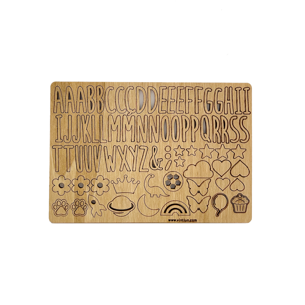 Lámpara quitamiedos con forma de un simpático unicornio dormido, realizada en madera sostenible. Puedes personalizar la lámpara con el nombre que quieras ya que viene con un kit auto-personalizable, que contiene letras y símbolos para darles toques decorativos a tu gusto. Funciona mediante pilas 3AAA y adaptador de corriente (no incluidos).